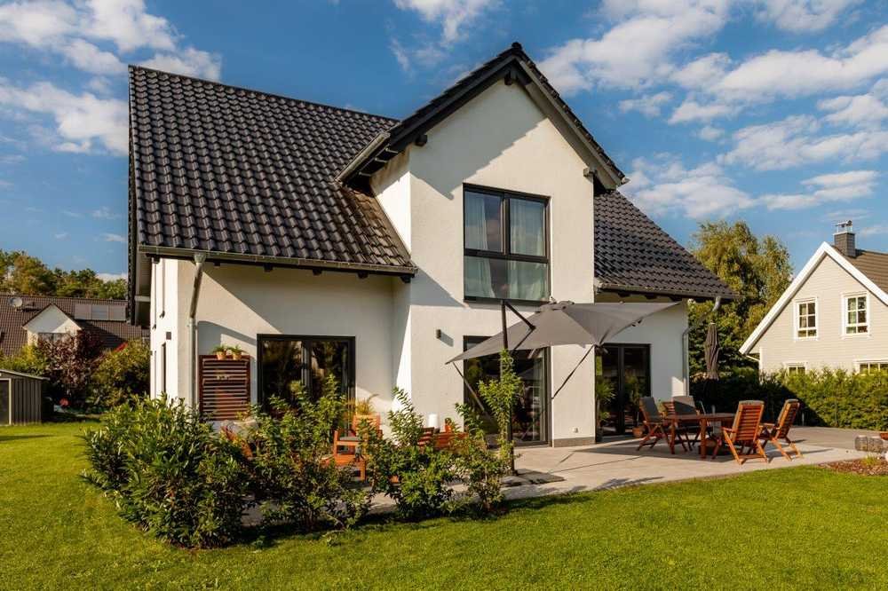 Modern und elegant anmutend ragt der Kapitänsgiebel dieses Satteldachhauses aus der Dachfläche heraus und ist nicht nur optisch ein Hingucker, sondern bringt auch zusätzlichen Raum und Tageslicht ins Dachgeschoß. Im Erdgeschoß eröffnet der Erker durch eine zweiflügelige Terrassentür den Blick – und natürlich auch den Weg – vom offenen Wohnbereich hinaus in den Garten. Doch nicht nur in puncto Optik kann dieses Elbe-Haus® überzeugen. Es ist ein Ort, in dem Sie sich wohlfühlen werden: Der Grundriss bietet viel Platz für Familien, ein großzügiges Badezimmer und ein zusätzliches Gästezimmer im Erdgeschoß. Hier wird jeder Quadratmeter perfekt genutzt, um Ihnen und Ihrer Familie das beste Wohnerlebnis zu bieten – und um dieses Haus zu Ihrem Zuhause zu machen.