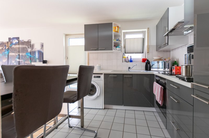 Hochwertige Einbauküche Fa. Nolte, Geschirrspüler AEG und Kühlschrank. Strombetriebene Fußbodenheizung mit eigenem Wärmestromzähler
