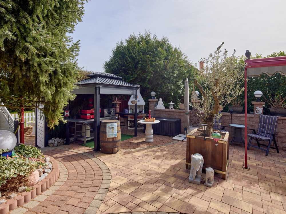 Dieses großzügige Einfamilienhaus mit Einliegerwohnung, das seit 2014 mit einer Photovoltaikanlage ausgestattet ist, wurde 1981 als Fertighaus erstellt und 1987 durch einen massiven Anbau erweitert. Auf drei Ebenen und einer Gesamtwohnfläche von ca. 319 m² bietet die Immobilie vielfältige Nutzungsmöglichkeiten. Das Haus liegt auf einem ca. 631 m² großen Grundstück in bester Lage von Hammersbach. Über den großen Eingangsbereich erreicht man das weitläufige Wohn- und Esszimmer mit Kamin, Leseecke und Zugang zum gemütlichen Wintergarten, der durch eine elektrische Markise und Rollläden beschattet wird. Auf dieser Ebene wird das Raumangebot durch die große Wohnküche mit hochwertiger Einbauküche, einem Hauswirtschaftsraum sowie ein Gäste-Duschbad abgerundet. Der Hauswirtschaftsraum kann mit geringem Aufwand wieder in seine ursprüngliche Nutzung als Gäste- oder Kinderzimmer zurück gebaut werden. Der hinter der Küche befindliche, nach Norden ausgerichtete große Balkon mit Markise bietet neben einem herrlichen Fernblick angenehme Kühle an heißen Tagen. Im ersten Obergeschoss befinden sich das Elternschlafzimmer mit anschließendem kleinem Ankleidebereich und Masterbad en Suite mit Wanne und Dusche. Auf dieser Etage gibt es zwei weitere Räume, die als Kinder- oder Ankleidezimmer oder auch Büro genutzt werden können. Ein Highlight auf dieser Ebene ist das zusätzliche in 2007 renovierte Vollbad mit Doppelwaschbecken, Badewanne und Dusche. Der helle und große Flur auf diesem Stockwerk kann sehr gut als Spielbereich für Kinder genutzt werden. Im Untergeschoss befindet sich der Technikraum sowie die gut ausgestattete Einliegerwohnung mit drei Zimmern, Küche und Duschbad, die auch gewerblich genutzt werden kann. Das Anwesen bietet eine wunderschön gestaltete mediterrane Außenanlage, die nach Süden ausgerichtet ist. Über die mit einem elektrischen Rolltor gesicherte Zufahrt auf das Grundstück, erreichen Sie die zwei Stellplätze, ein Doppelcarport sowie eine Motorradgarage. Auszug aus den erfolgten Sanierungs- und Renovierungsmaßnahmen der letzten Jahre: