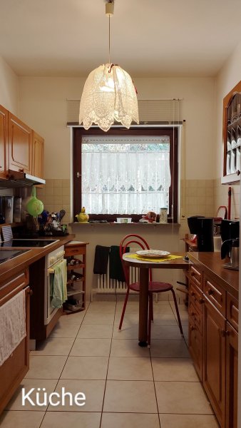 Weiter geht es in die große Diele die lange als Esszimmer und nun als zweites Wohnzimmer genutzt wird. Von hieraus kommt man in die Küche, das große sonnige Wohnzimmer mit Zugang zur Terrasse, ein Kinder- oder Arbeitszimmer, das Schlafzimmer, einem Bad und dem Gäste WC sowie dem Treppenhaus zum Keller. Im Keller befindet sich der Warmwasserspeicher, Platz für Waschmaschine, Trockner, Hobby oder Gäste. Aktuell sind es zwei große Räume, der eine als Hauswirtschaftsraum genutzt und der andere als Gästezimmer genutzt.