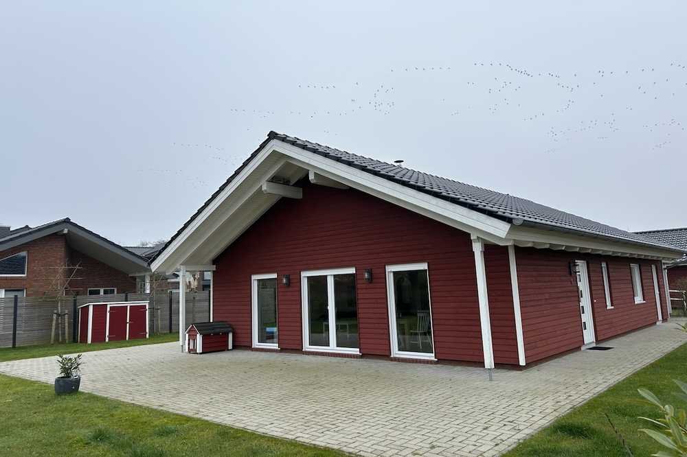 Herzlich willkommen in Ihrem neuen Traumferienhaus! Dieses hochwertige Domizil, Baujahr 2016, bietet die perfekte Kombination aus modernem Wohnkomfort, durchdachter Ausstattung und naturnaher Lage. Der großzügige Wohn- und Essbereich besticht durch eine offene Küche, die sich ideal für gemeinsame Kochabende eignet. Hochwertige Geräte lassen keine Wünsche offen. Das Haus verfügt über zwei moderne Bäder. Ein Bad mit Dusche und Fenster bietet Funktionalität, während das zweite Bad mit Dusche und Badewanne direkt vom Elternschlafzimmer aus zugänglich ist und höchsten Komfort garantiert. Ein weiteres Schlafzimmer steht ebenfalls zur Verfügung. Ein separater Hauswirtschaftsraum und ein Abstellraum bieten Platz für Vorräte und Haushaltsutensilien. Dreifach verglaste Kunststofffenster sowie elektrisch betriebene, wärmegedämmte Außenrollläden sorgen für eine hervorragende Wärmedämmung und Energieeffizienz. Eine Gastherme aus dem Baujahr 2016 versorgt das Haus zuverlässig mit Wärme. Zusätzlich sorgt eine Fußbodenheizung in allen Wohnräumen für ein angenehmes Wohnklima. Der Kamin im Wohnbereich schafft an kalten Tagen eine gemütliche Atmosphäre. Robuste Vinylböden in den Wohnräumen sorgen für eine warme Optik, während Fliesen in den Nassbereichen eine pflegeleichte Lösung bieten. Ein eingezäunter Garten mit Doppelstabzaun bietet Privatsphäre - ideal auch für Haustiere. Die teilweise überdachte Terrasse lädt zum Entspannen ein, egal ob bei Sonnenschein oder leichtem Nordseewind. Dieses Ferienhaus ist nicht unterkellert und bietet durch seine moderne und energieeffiziente Bauweise ein komfortables Zuhause - ob als Rückzugsort an der Nordsee oder als lukratives Ferienvermietungsobjekt.