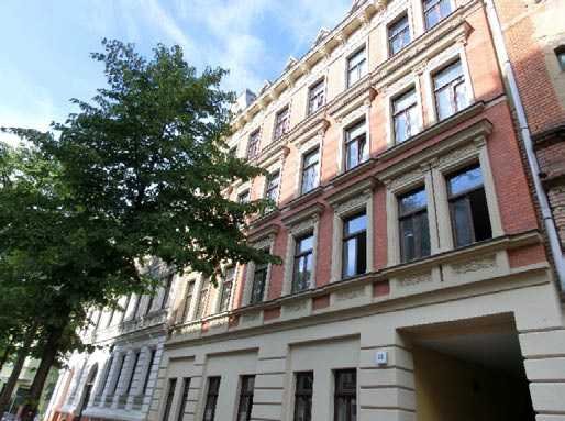 Das familiäre Mehrfamilienhaus wurde 1898 errichtet und Mitte der 90-er Jahre neu saniert. Das Haus gliedert sich in ein Vorderhaus und einen Seitenflügel, jeweils über ein separates Treppenhaus begehbar. Insgesamt befinden sich 19 Wohnungen in dieser Anlage. Das Einzeldenkmal verfügt über einen schönen und ruhigen Hinterhof mit Platz für Fahrräder und Stellplätze.