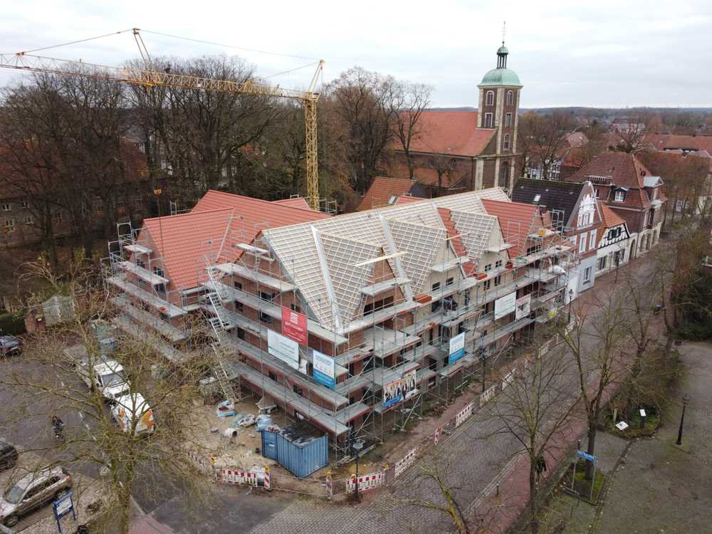 Im Herzen von Drensteinfurt, an der Schlosspforte, entsteht ein attraktives Mehrfamilienhaus in moderner und hochwertiger Architektur. Das Gebäude fügt sich harmonisch in den historischen Stadtkern ein, indem es die traditionelle Giebelarchitektur der Umgebung aufgreift. So trägt das Gebäude maßgeblich zur Aufwertung und zum Erhalt des historischen Flairs der Innenstadt bei.