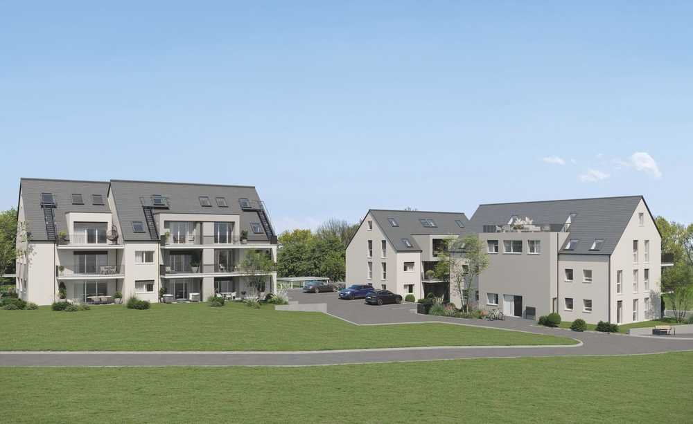 Ob Gartenterrasse, Balkon oder Dachterrasse, für die wärmeren Tage sind herrliche Freisitze eingeplant worden. Im Dachgeschoss bieten Maisonette-Wohnungen Gemütlichkeit auf zwei Ebenen. Die nebenstehende Grafik vermittelt einen ersten Eindruck der Anordnung und Aufteilung der Gebäude auf dem Areal. Sowohl oberirdische Stellplätze als auch PKW-Stellplätze in der Tiefgarage stehen zur Auswahl.