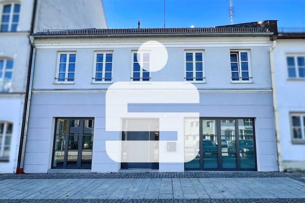 Das Erdgeschoss ist als Bürofläche vermietet. Diese Fläche von rund 128 m² eignet sich auf Grund der Raumaufteilung sowie der vorhandenen Anschlüsse optimal als Café oder kleine Ladeneinheit. Diese Räume sind sowohl vom Marktplatz als auch von der Rückseite des Gebäudes zugänglich. Vom hinteren Bereich aus, gelangt man in den kleinen Vorratskeller, welcher jedoch nur als Lagerfläche genutzt werden kann.