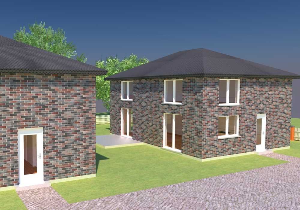 Das Objekt ist 1,5-geschossig, verfügt über ein Walmdach und wird in Verblendausführung fertiggestellt.