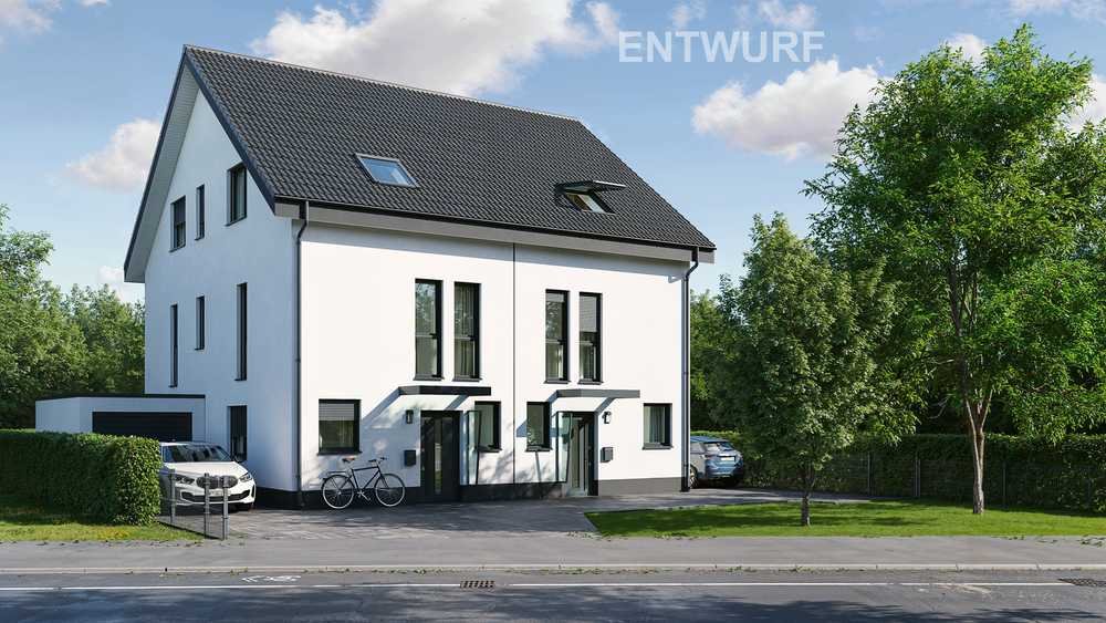 Hier planen wir für Sie traumhaft schöne Einfamilienhäuser als Doppelhaushälfte im modernen Stil mit großzügigen, lichtdurchfluteten Räumen durch bodentiefe Fenster Elementen in unverbaubarer Sonnenausrichtung.