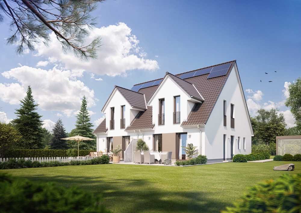Hier entsteht eine Neubau-Doppelhaushälfte, auf insgesamt zwei Etagen steht Ihnen großzügiger Wohnraum zur Verfügung. Neben einem offenen Wohnbereich, der Kochen, Essen und Wohnen verbindet, befindet sich im Erdgeschoss ein Duschbad, ein Raum wahlweise für Gäste, Büro, Hobbies oder ein weiteres Schlafzimmer sowie ein kleiner Abstellraum und der Hausanschlussraum. Ins Dachgeschoss gelangt man über eine geschlossene Holztreppe, die mit einer massiven Brüstung abschließt.