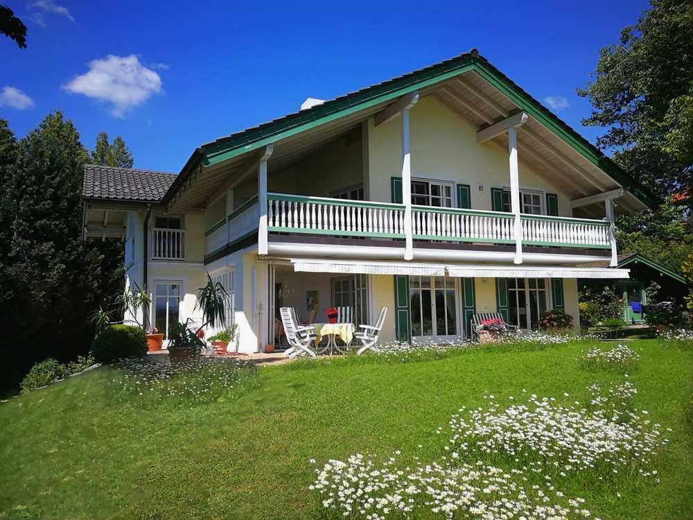 Das wunderschöne, offen gestaltete, lichtdurchflutete und alleinstehende Landhaus wurde in Massivbauweise mit vielen Besonderheiten gebaut. Der freie Ausblick auf die Bergkette und den Chiemsee sind atemberaubend und selten.