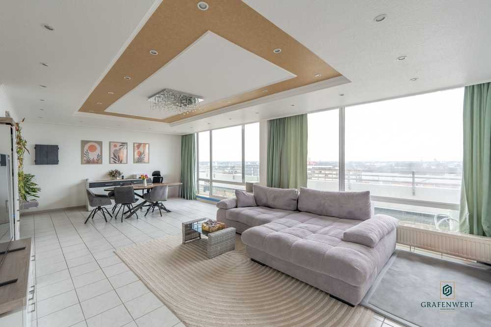 Willkommen in Ihrem neuen Zuhause über den Dächern von Neuss! Dieses luxuriöse Penthouse in der Görlitzer Straße 2 bietet ein einzigartiges Wohnerlebnis mit 270-Grad-Panoramaterrasse und einem unverbaubaren Blick auf die Skyline von Düsseldorf.