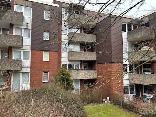Gepflegte und optimal geschnittene 3-Zimmer-Eigentumswohnung mit großzügiger, überdachter Terrase, in ruhiger Wohnlage, EG, 3 geschossiges Wohnhaus mit 17 WE, Eigentümergemeinschaft mit 92 WE (verteilt auf 7 Gebäude), 63 Garagen und 10 KfZ-Abstellplätze, Bj. 1975, ansprechendes Treppenhaus, offene Konstruktion, Stahlbetontreppen mit Kunststeinbelag. Außen: Mauerwerk größtenteils rot verklinkert sowie Plattenbehang, Flachdach, Kellerraum (ca. 6 qm), Trockenkeller und Fahrradraum in Gemeinschaftsnutzung.