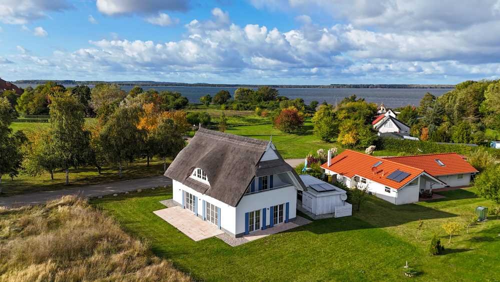 Dieses exklusive Ferienhaus in Vaschvitz auf der idyllischen Insel Rügen vereint zeitloses Design mit durchdachter Funktionalität auf einem großzügigen Grundstück von 765 m². Die 2019 erbaute Immobilie bietet auf zwei Etagen eine Wohnfläche von ca. 138 m². Die gepflasterte Auffahrt führt zum Carport, auf dessen Dach zwei Solarpanels für die Warmwasserbereitung installiert sind. Angrenzend befindet sich ein praktischer Schuppen, der zusätzlichen Stauraum für Gartengeräte oder Fahrräder bietet. Beim Betreten des Hauses gelangt man zunächst in die Diele, die direkt in den großzügigen Wohn- und Essbereich übergeht. Das Herzstück des Erdgeschosses bildet dieser Raum. Seine bodentiefen, doppelt verglasten Fenster sorgen für eine lichtdurchflutete und einladende Atmosphäre. Der Ausblick führt direkt in den Garten, der bequem über die Terrasse erreicht werden kann. Der offene Küchenbereich bietet Raum für individuelle Gestaltungsmöglichkeiten. Im Erdgeschoss befinden sich zudem zwei weitere Zimmer. Eines eignet sich als Gäste- oder Arbeitszimmer, das andere verfügt über einen direkten Zugang zum eigenen Vollbad mit in den Boden eingelassener Badewanne. Ein weiteres Badezimmer mit Dusche komplettiert den Wohnbereich im Erdgeschoss. Die Fußbodenheizung sorgt für angenehme Wärme im ganzen Haus und trägt zum Wohlfühlklima bei. Auch für ausreichend Stauraum ist im Erdgeschoss gesorgt. Unter der Treppe befindet sich ein praktischer Abstellraum und der Hauswirtschaftsraum bietet nicht nur Platz für Haushaltsgeräte, sondern ist auch mit einer modernen Buderus Gastherme, einer Grünbeck Wasserenthärtungsanlage sowie Anschlüssen für Waschmaschine und Trockner ausgestattet. Das Highlight befindet sich jedoch im Obergeschoss. Das großzügige Schlafzimmer mit ca. 30 m², dass durch eine charmante Fledermausgaube bereichert wird, bietet Zugang zu zwei Balkonen und ist besonders beeindruckend. Ein modernes Vollbad en Suite mit Eckbadewanne und separater Dusche sorgt für Komfort und Entspannung. Zusätzlich verfügt die Etage über einen Vorraum, der ursprünglich als Teeküche geplant und ebenfalls Zugang zum westlichen Balkon bietet. Dieses Ferienhaus vereint modernen Wohnkomfort mit einem besonderen Ambiente und der Ruhe der Insel Rügen.