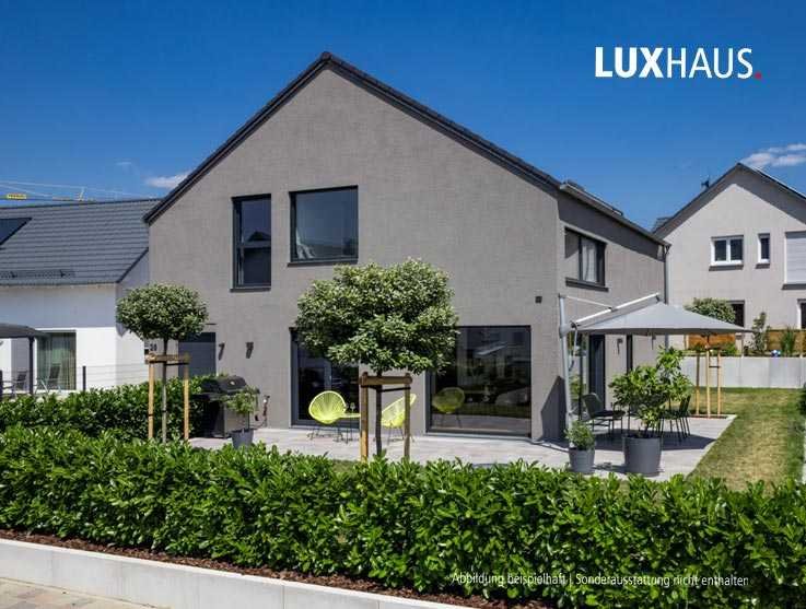Dieser LUXHAUS-Entwurf auf Bodenplatte (Unterkellerung möglich) bietet dem Bauherren komfortables Wohnen pur.