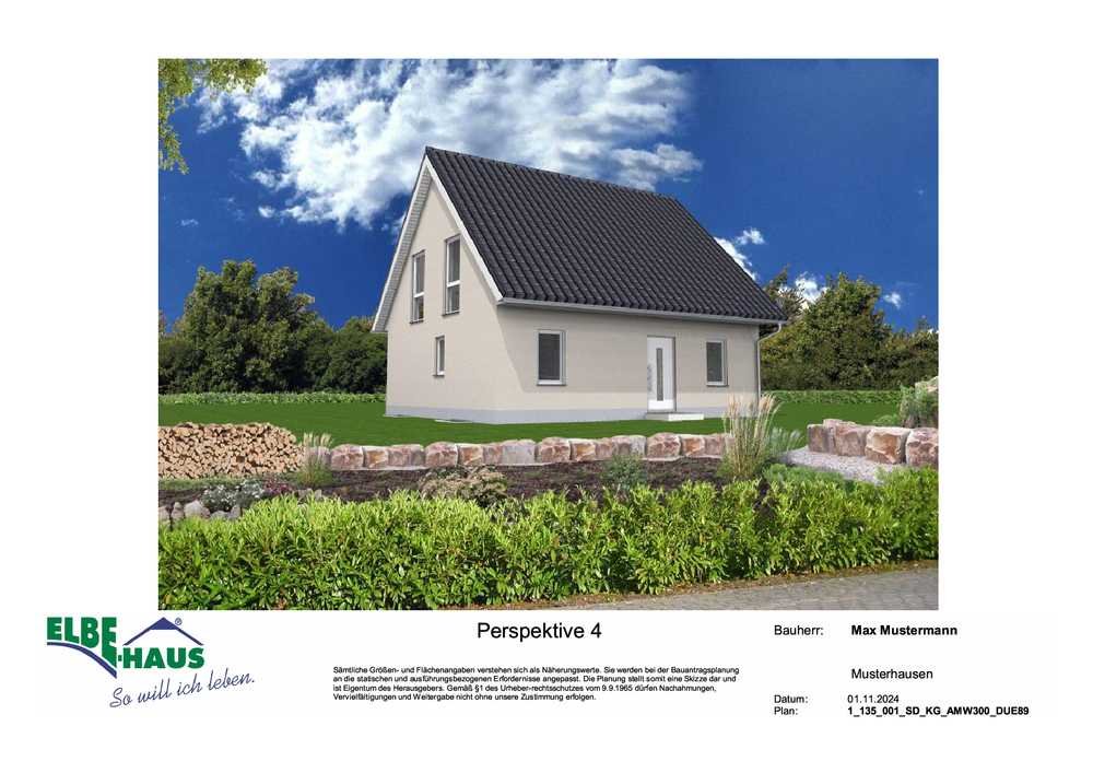Dieses innovative Elbe-Haus® wird in massiver Bauweise von qualifiziertem Fachpersonal errichtet. Wir planen und projektieren nach Ihren Vorstellungen und Wünschen und somit ist wirklich jedes Haus einzigartig. Beachten Sie bitte, dass das abgebildete Haus lediglich ein Bebauungsbeispiel ist. Das Grundstück kann unter Berücksichtigung der örtlichen Bauvorschriften mit Ihrem Wunschhaus von Elbe-Haus® errichtet werden.