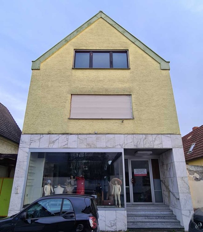 Im ERDGESCHOSS befindet sich ein Verkaufsraum, ein Lager und eine große Backstube (leer).