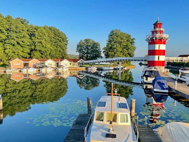 Dieses kleine Ferienhaus hat eine ganz besondere Lage: In der ersten Reihe im Hafendorf haben Sie freie Sicht auf den Leuchtturm und den dahinter gelegenen Rheinsberger See. Diesen herrlichen Ausblick können Sie von Ihrer Terrasse im Erdgeschoss und dem Balkon im Obergeschoss genießen. Im Hochsommer begeistert Sie immer wieder aufs Neue der Sonnenuntergang, an dem Sie sich nie satt sehen werden. Auch im Winter ist es im Häuschen urgemütlich, wenn der Kaminofen bollert und Sie bei heißem Tee oder einem Glas Wein entspannt auf das Wasser blicken. Da das Haus über eine Fußbodenheizung verfügt, ist es ganzjährig nutzbar und kühlt bei Abwesenheit nicht aus.