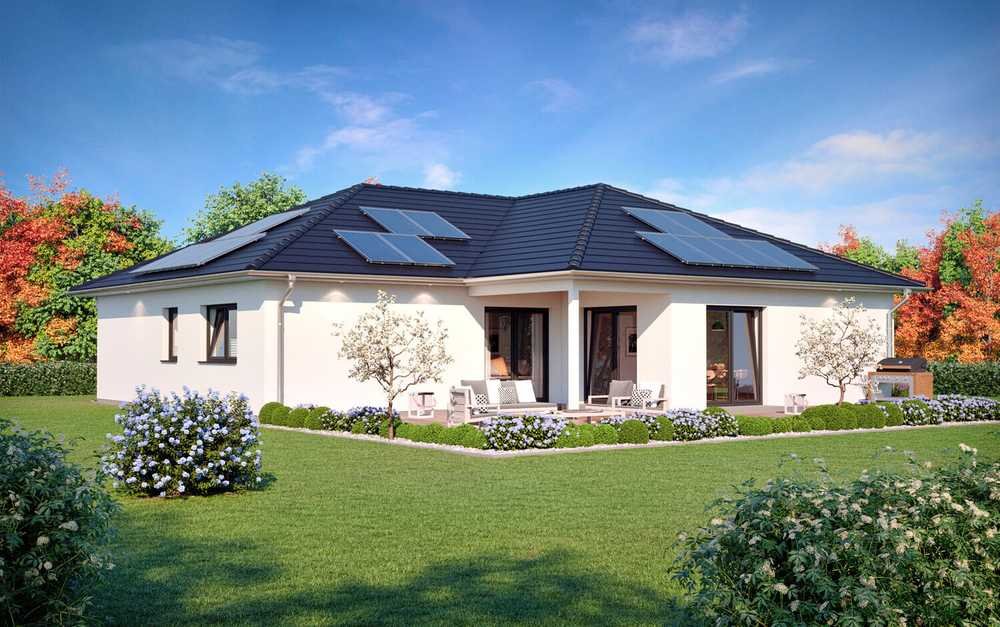Der Bungalow SH 156 WB mit seinen Panoranverglasungen besticht durch eine große überdachte Terrasse inklusive Nischen für Stauraum - Outdoor Deluxe!