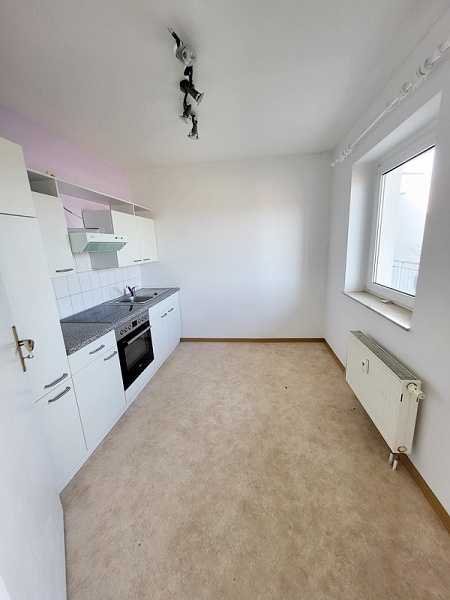 Die 3-Raum-Dachgeschoß-Wohnung verfügt über ein Wohn-, ein Kinder- und ein Schlafzimmer mit PVC-Belag in Parkettoptik, eine Küche mit Einbauküche und ein Duschbad.