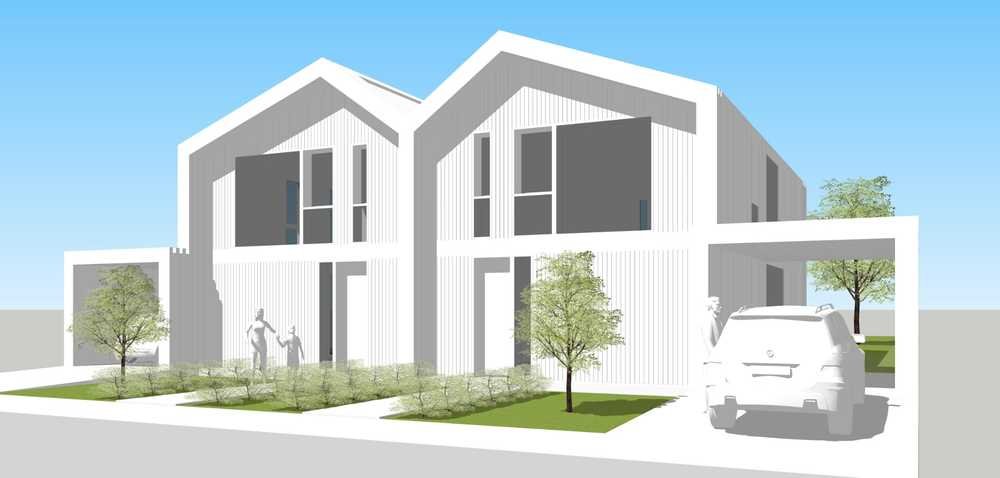 Auf den ca. 400 m² großen Grundstücken entstehen zwei spiegelgleiche Haushälften mit jeweils knapp 122 m² Wohnfläche verteilt auf 2 Etagen.