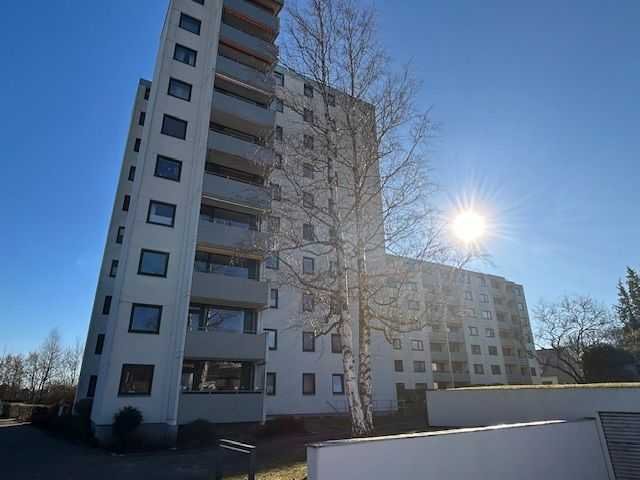 Helle 4-Zimmer-Wohnung mit tollem Blick, 5. Etage, 10 geschossiges Wohnhaus mit 82 WE (verteilt auf 2 Eingänge), Bj. 1972, Fahrstuhl, Treppenhaus (gepflegt), offene Konstruktion, Laufbalken aus Beton mit Kunststeinstufen. Außen: Kalksandsteinmauerwerk mit weißen Platten verkleidet, Flachdach.