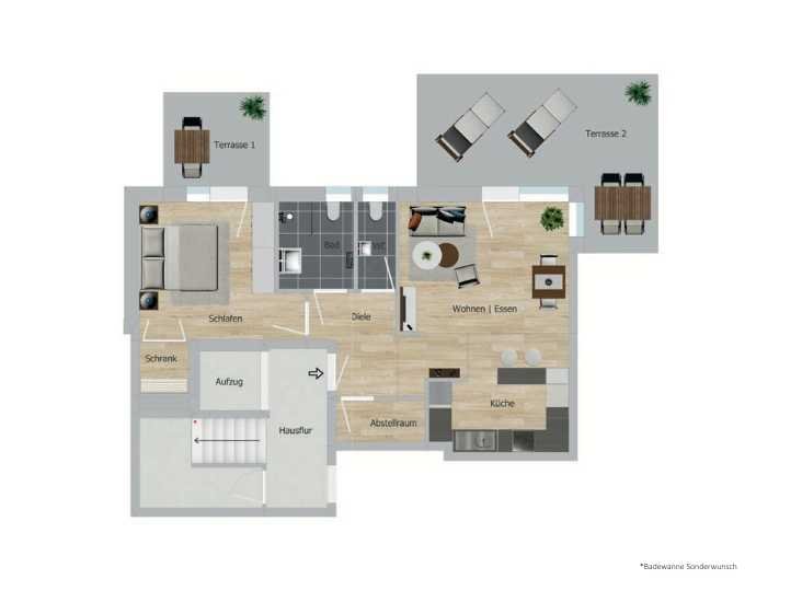 Gemütliche 2-Zimmer-Wohnung mit 2 Terrassen