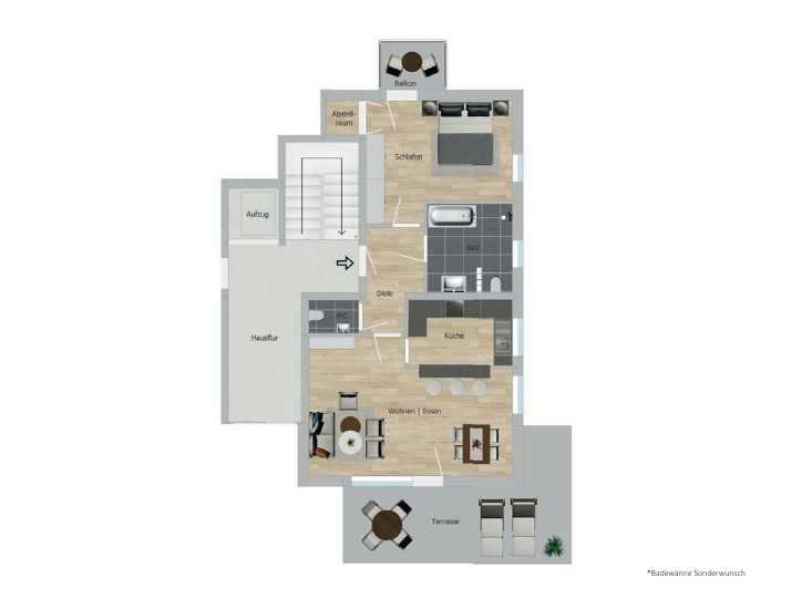 Helle 2-Zimmer-Wohnung im Erdgeschoss mit Terrasse und Balkon