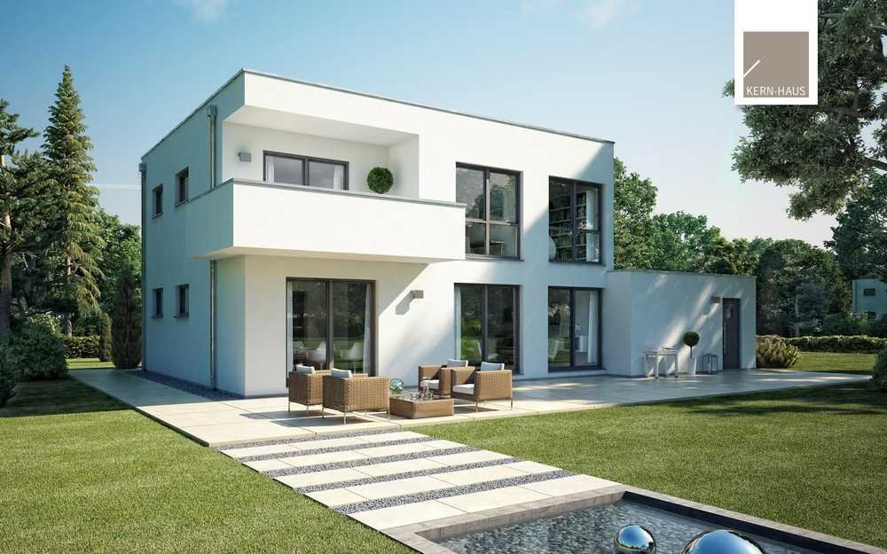 Das Kern-Haus Cube verkörpert Kompromisslosigkeit in Form und Funktion. Die Fassadengestaltung folgt den Proportionen des modernen Bauhausstils.