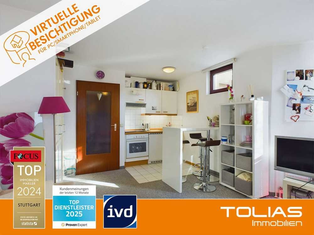 Diese gepflegte 1-Zimmer-Wohnung im 1. Obergeschoss eines 1992 erbauten Mehrfamilienhauses bietet eine Wohnfläche von ca. 27 m² mit einer durchdachten Raumaufteilung. Der offene Wohn- und Küchenbereich ist funktional gestaltet und durch große Fenster lichtdurchflutet. Ein angrenzender, überdachter Balkon sorgt für zusätzlichen Wohnkomfort.