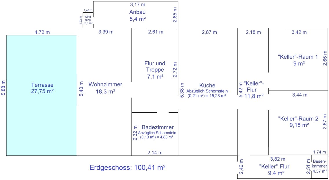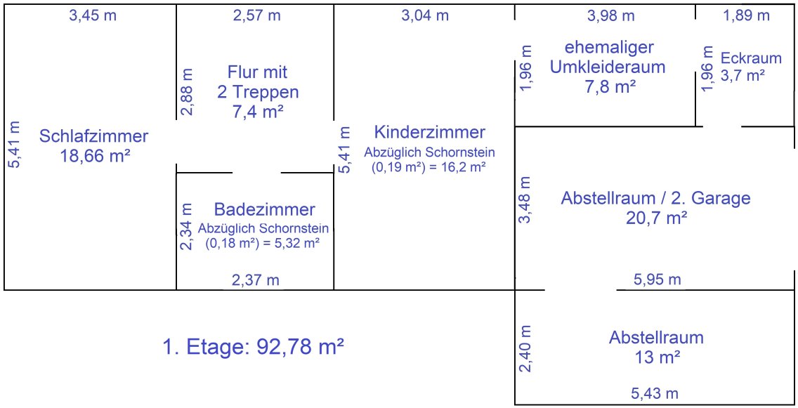 Haus: 193,19 m² (Erdgeschoss: 100,41 m² + 1. Etage: 92,78 m²).