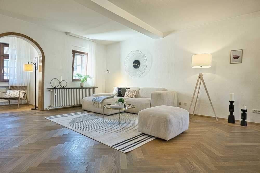 Diese aufwendig ausgebaute ehemalige Scheune besticht mit einem besonderen Ambiente und bietet auf 150 m² Wohnfläche viel Raum für individuelle Wohnideen. Zwei Stellplätze am Hof inkl. weitere können im Zuge einer Realteilung erworben werden.