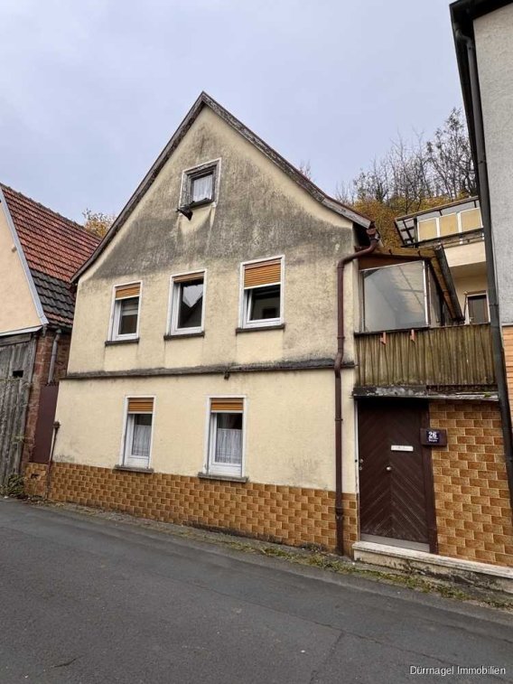 Zum Verkauf steht ein sanierungsbedürftiges Haus in Retzbach. Dieses kleine Haus bietet im Untergeschoss eine Küche, ein Badezimmer mit Badewanne sowie einen praktischen Abstellraum. Im Obergeschoss befinden sich das Wohnzimmer, ein Schlafzimmer und ein Kinderzimmer, die genügend Platz für eine kleine Familie bieten. Im hinteren Bereich des Hauses gibt es weitere Abstellmöglichkeiten sowie einen Parkplatz, was zusätzlichen Komfort schafft. Das Haus bietet Potenzial als Sanierungsobjekt für alle, die ein Zuhause nach eigenen Vorstellungen gestalten möchten.