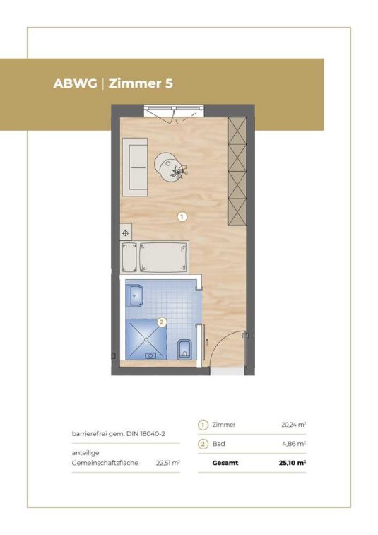 Der Kaufpreis erstreckt sich über eine Gesamtfläche von ca. 48 m², inklusive eines anteiligen Gemeinschaftsbereichs, der den Bewohnern als Aufenthalts- und Begegnungsraum dient.