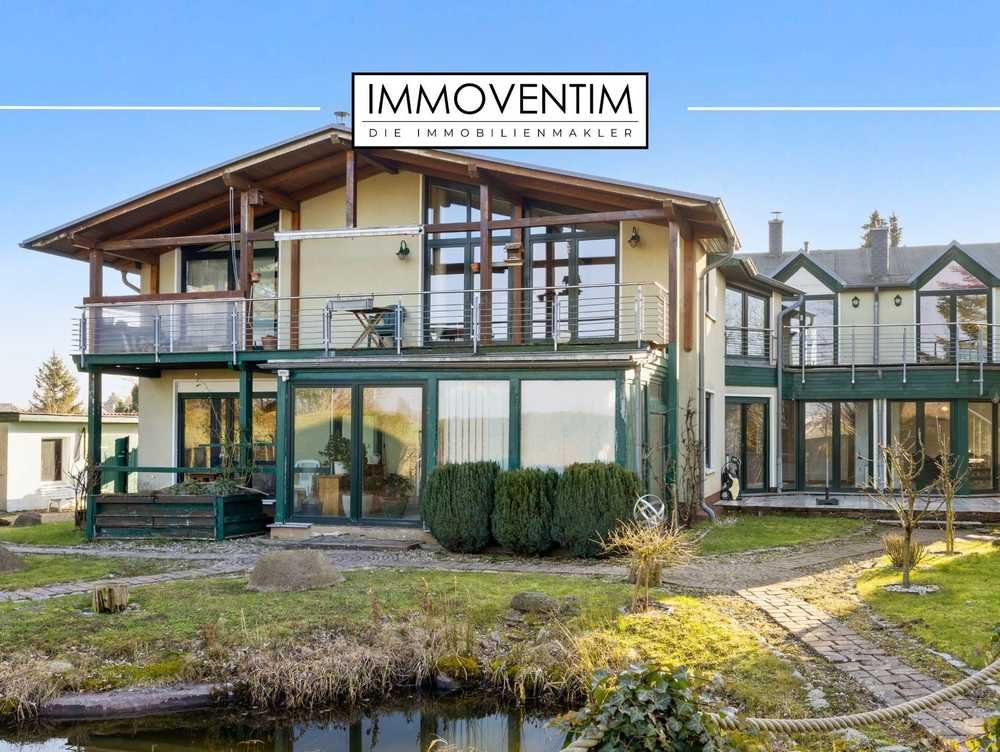 Auf einem 2.706 m² großen Grundstück erstreckt sich ein freistehendes Doppelhaus mit Einliegerwohnung. Die gesamte Wohnfläche beträgt ca. 449 m², verteilt auf drei separate Wohneinheiten mit individuellen Grundrissen sowie einer großzügigen Einliegerwohnung. Ergänzt wird das Anwesen durch Nebengebäude, eine Werkstatt, eine große Teichanlage und eine Carportanlage mit Stellplätzen.