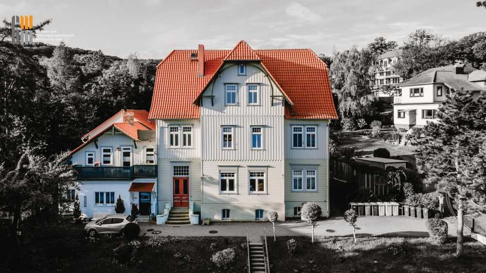 Willkommen in der Huberstraße 1, einer außergewöhnlichen historischen Villa in einer der schönsten Wohngegenden von Wernigerode. Dieses beeindruckende Anwesen wurde im Jahr 1905 erbaut und vereint den zeitlosen Charme der Gründerzeit mit modernen Nutzungsmöglichkeiten. Die repräsentative Architektur, die großzügigen Räumlichkeiten und die herrliche Panoramalage mit Blick auf das Schloss Wernigerode machen diese Immobilie zu einem echten Juwel.