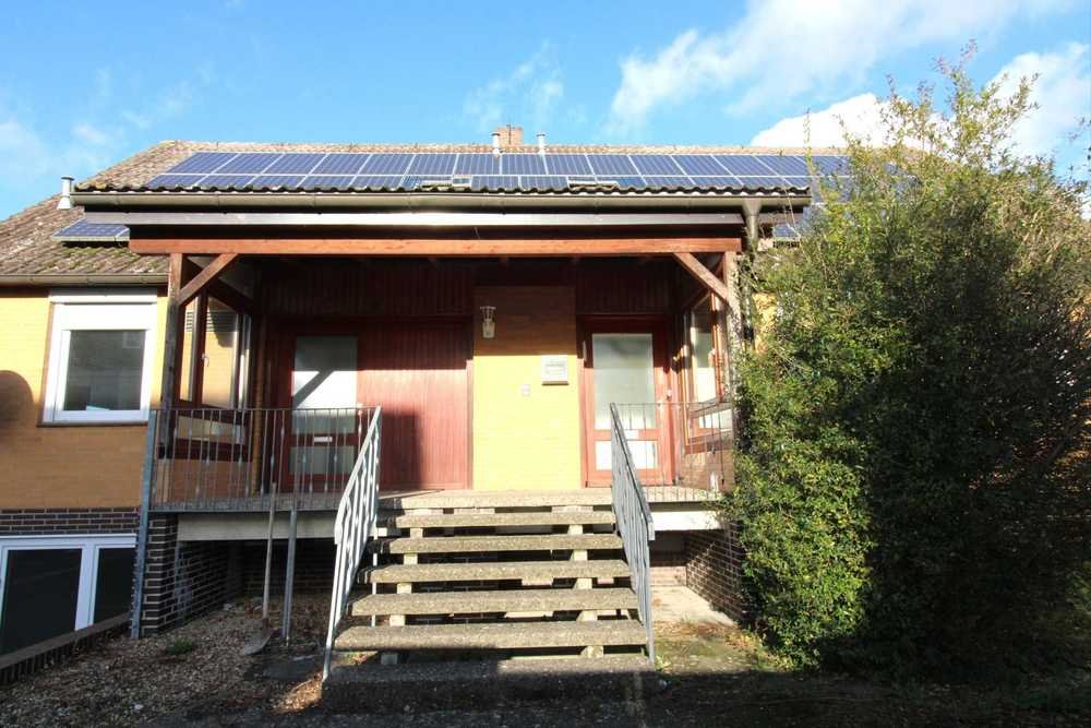 Diese ansprechende Doppelhaushälfte überzeugt durch ihre helle, offene Raumgestaltung und moderne Akzente. Die linke Haushälfte ist bequem über eine gerade Zufahrt zu erreichen, die direkt zum privaten Parkplatz führt. Über ein paar Stufen gelangen Sie zum gemeinschaftlichen, überdachten Hauseingang, der beiden Haushälften separat zugänglich ist.