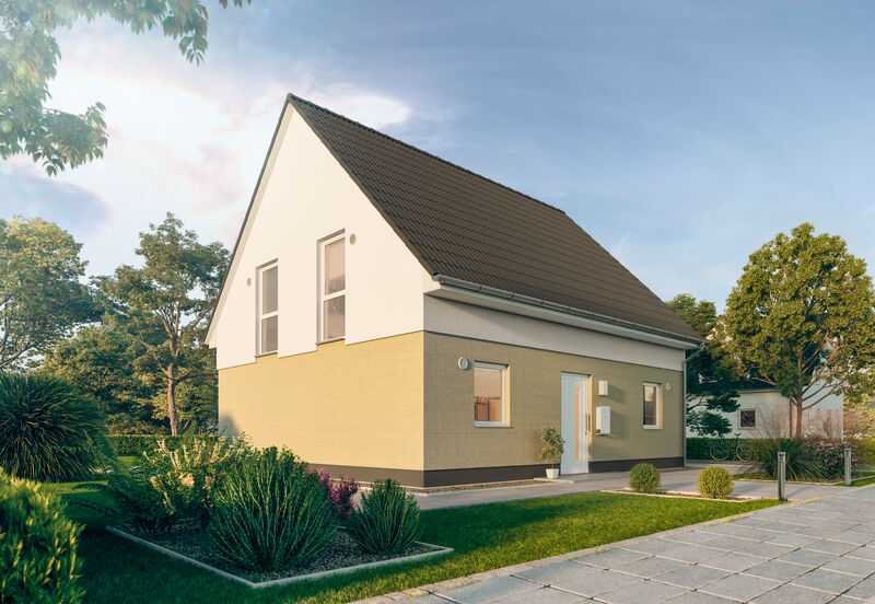Auch von außen ist das Edition Clever 138+ ein optischer Hingucker. Ein Besenzug-Putz setzt das Erdgeschoss farblich vom Rest des Hauses ab.