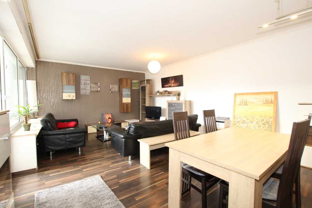 Die Aufteilung selbst gestaltet sich wie folgt: Vom Flur aus erreichen Sie alle Zimmer. Das große Wohnzimmer mit integriertem Essbereich, das viel Platz für gemütliche Stunden und gesellige Abende bietet. Von hier aus haben sie einen direkten Zugang auf den Balkon, hier lässt sich sowohl der Frühstückskaffee genießen, während man in die Sonne blinzelt als auch am Abend die Freunde bei einem Glas kalten Veltins empfangen.