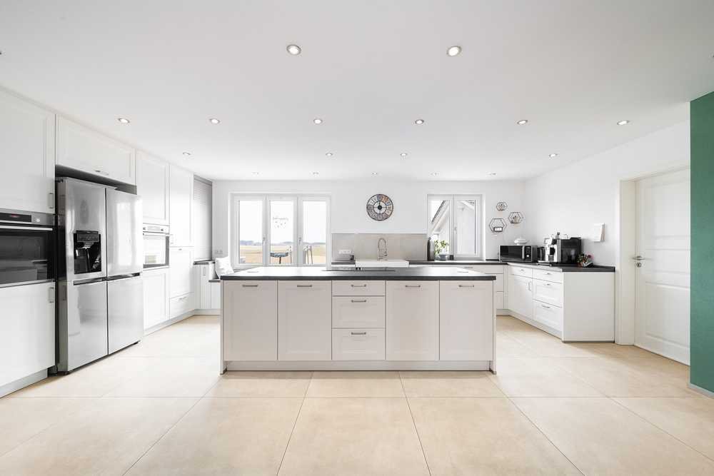 Im Erdgeschoss befindet sich die hochwertige Einbauküche mit Platz für den Essbereich und anschließendem sonnenverwöhnten Wohnzimmer. Ein praktisches Detail mit echtem Mehrwert ist der Schwedenofen in moderner Ausgestaltung, welcher Sie an kalten Tagen zusätzlich wärmt. Ferner gibt es ein Gäste-WC auf gleicher Ebene.