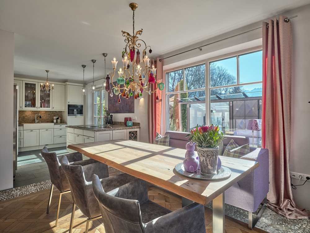Ob auf der sonnigen Loggia mit Bergblick im Obergeschoss, im luftigen Wintergarten oder im stilvollen Wohnbereich – dieses Haus ist ein Ort voller Ruhe, Inspiration und exklusivem Wohnkomfort.