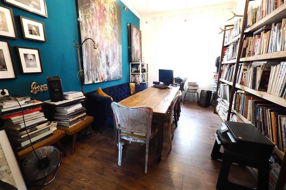 Mit ihren etwa 95 qm Wohnfläche, verteilt auf 3 Zimmer und dem Atelierraum mit Schaufenster und Zugang von und Zur Straße ist sie ideal für Individualisten und kreative Menschen.