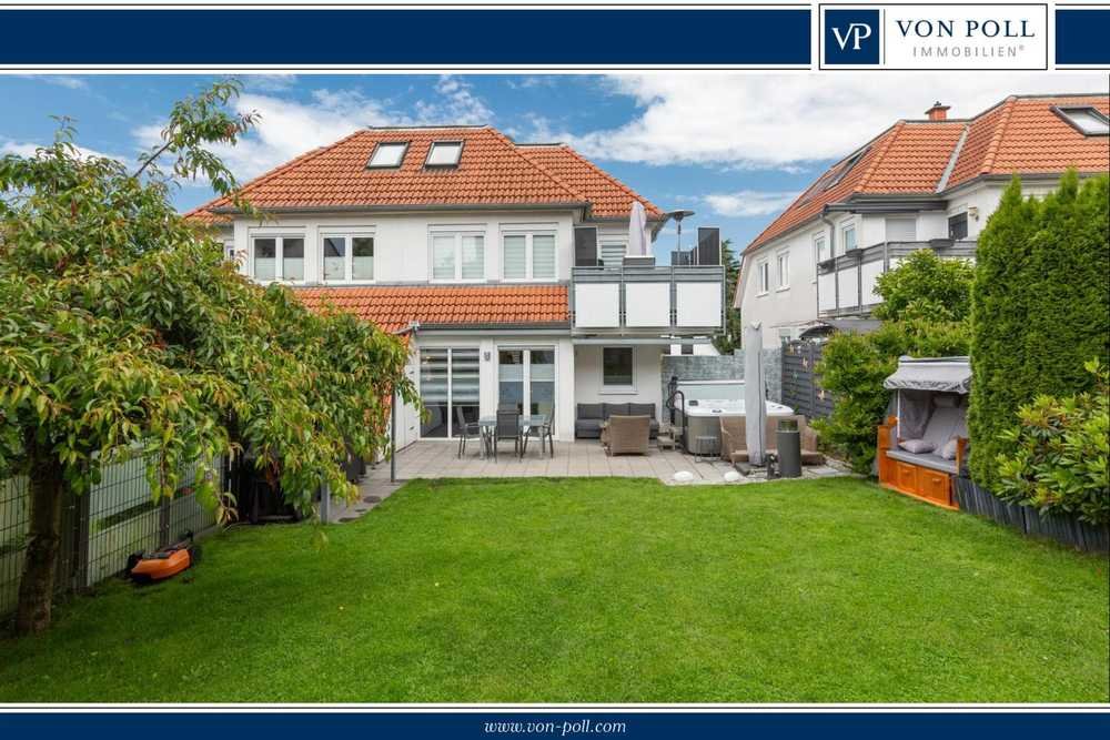 Über eine seitliche Treppe gelangen Sie zur eigenen Haustür und auf die Hauptwohnebene mit Ausgang zur Terrasse und in den Garten.