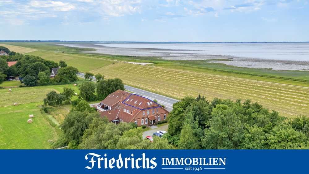 Nutzen Sie diese exklusive Gelegenheit zum Erwerb einer vollständig ausgestatteten Ferienwohnung in einzigartiger Lage direkt am Deich mit Blick auf die Nordsee. Die Wohnung befindet sich im Dachgeschoss eines gepflegten Mehrfamilienhauses mit insgesamt zehn Wohneinheiten und überzeugt durch eine durchdachte Raumaufteilung. Der großzügige Wohnbereich mit offener Küche besticht durch einen herrlichen Blick zum Deich und sorgt für eine einladende Atmosphäre. Das Angebot wird entsprechend durch zwei Schlafzimmer und ein Badezimmer ergänzt. Diese Immobilie eignet sich sowohl als private Ferienresidenz als auch als attraktive Kapitalanlage.
