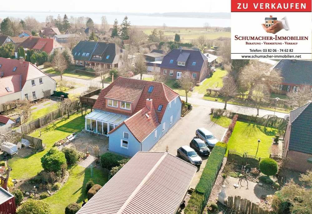 Zwischen Bodden und Ostsee, etwas abseits vom Touristentrubel, in einer ruhigen und außergewöhnlich schönen Naturlandschaft steht dieses Einfamilienhaus mit Einliegerwohnung. Ursprünglich stammt es aus den 1890er Jahren und war ehemals als Einfamilienhaus konzipiert. Das Haus erfuhr regelmäßige Modernisierungs- und Umbaumaßnahmen. Die Wohnung im Erdgeschoss ist ca. 113 m² groß und wurde 2015 komplett saniert. Die Wohnung im Dachgeschoss mit ca. 78 m² setzt sich aus zwei Räumen auf der unteren Ebene, sowie einer Wohnküche, einem Wohnzimmer, zwei Zimmern und einem kleinen Bad unter der Dachschräge auf der oberen Etage zusammen. Das Grundstück ist sehr gepflegt und liebevoll angelegt. Ein Nebengebäude und sechs Alu-Container dienen als Nebengelass. Bis zu fünf PKWs finden auf der gepflasterten Stellfläche seitlich am Haus Platz. Das Grundstück grenzt an der nördlichen Grundstücksgrenze ebenfalls an eine ruhige Nebenstraße. Zusätzlich zum Angebot erhalten Sie 703 m² Grünland in unmittelbarer Boddennähe dazu.
