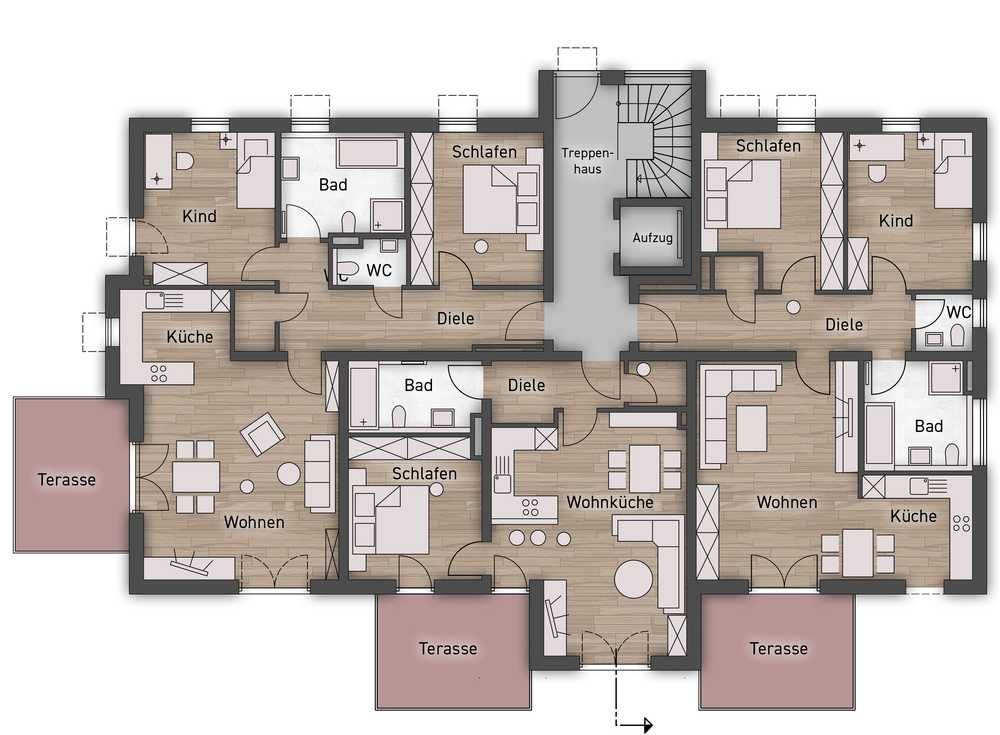 Die Ausrichtung der optimal geschnittenen 3-Zimmer-Wohnung geht nach Süden und Osten. Dadurch ist ganztags beste Belichtung und Sonneneinstrahlung gegeben.
