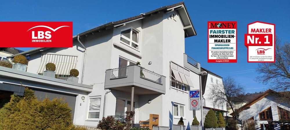 Dieses in 1994 in Massivbauweise errichtete Zweifamilienhaus lässt keine Wünsche offen. Es wurde 30 Jahre lang von den Verkäufern bewohnt und in einem neuwertigen Zustand erhalten. Die Wohnfläche teilt sich wie folgt auf. Im Erdgeschoß befindet sich die zweite Wohneinheit mit 72m² Wohnfläche. Dazu gehört auch eine Terrasse und ein separater Stellplatz. Die große Wohneinheit verfügt im Obergeschoß über ca. 106m² und noch einmal ca.82m² im Dachgeschoß. Dort befinden sich auch die Sauna und das Fensterbad mit Wanne und Dusche. Alle Räume sind durch gut platzierte Fenster sehr hell. Drei Balkone machen es möglich, dem Lauf der Sonne zu folgen. Die zum Essbereich offene Küche vermittelt sehr schön, wie großzügig die Wohnfläche hier zur Verfügung steht. Dass spiegelt sich ebenso im Wohnbereich wieder. Auch im Garten fehlt es an nichts. Eine ca. 4.000ltr. große Regenwasserzisterne und ein Gartenteich mit Umwälzpumpe und Wasserspiel befinden sich dort. Natürlich gibt es bei diesem Objekt eine Doppelgarage mit elektrischem Tor und einer Wallbox. Auch der Glasfaseranschluss ist schon bis zur Garage verlegt.