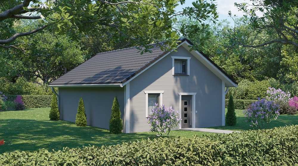 Das Haus wird als schlüsselfertige Version als Holzrahmenbau mit Satteldach erstellt.So können die Bodenbeläge und weitere Details noch nach eigenen Vorstellungen festgelegt werden. Bei Bedarf kann das Dach als Galerie, mit einer Nutzfläche vom ca. 18 m², erreichbar durch eine feste Treppe erstellt werden, um einen Gäste- oder Abstellbereich zu schaffen.