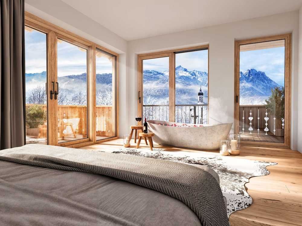 Diese 3-Zimmer-Wohnung im 1. Obergeschoss des Haus Ludwig ist ein wahr gewordener Wohntraum für Blickliebhaber, Frühaufsteher und Sonnenanbeter. Auf ca. 121 m² Wohnfläche genießen Sie Sonne satt, ein einzigartiges Panorama auf die Berge und ein großzügiges Raumgefühl. Der umlaufende Balkon mit Panoramafenstern, der Schlaf- und Wohnzimmer verbindet, schafft eine besondere Offenheit und lässt Sie schon morgens aus dem kuscheligen Bett die Sonne und die Bergwelt begrüßen.