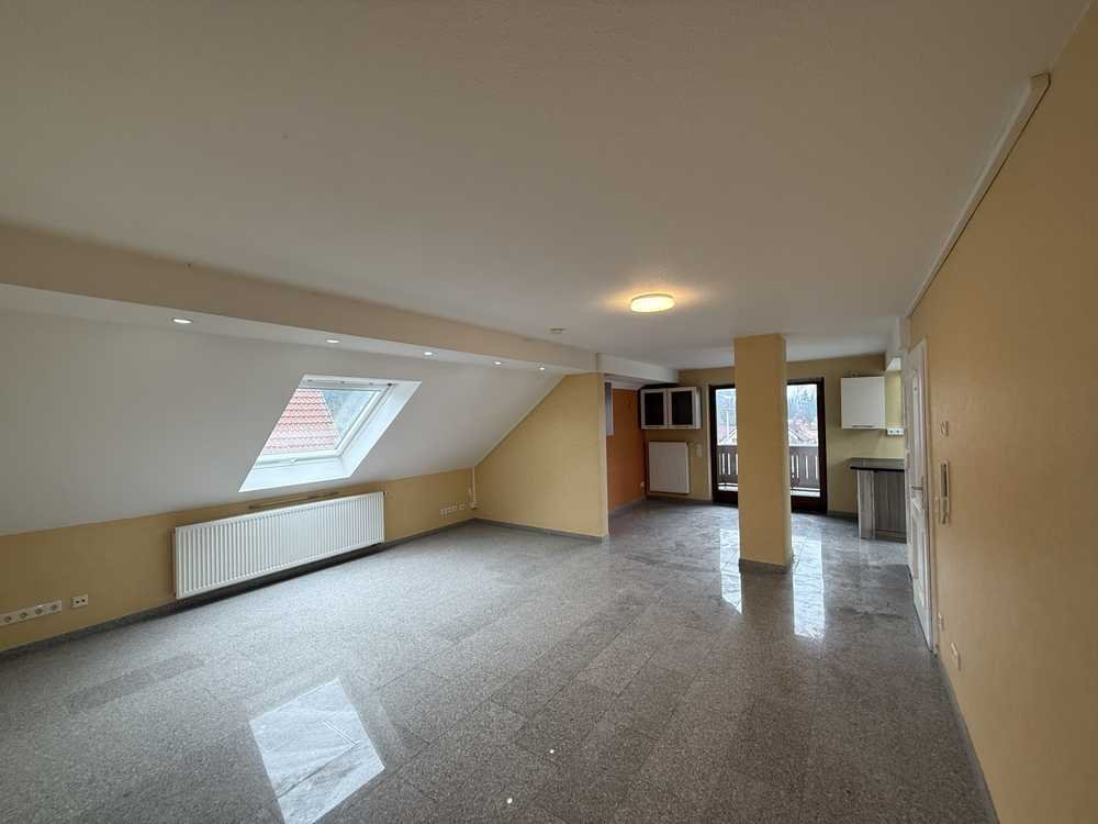 Moderne 3-Zimmer-Dachgeschosswohnung mit Balkon, Garten und Garage.