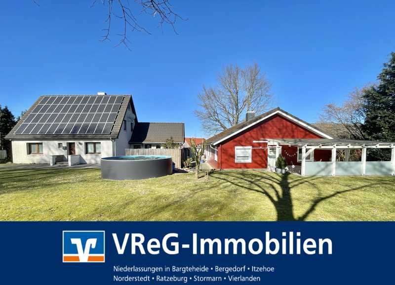 Zum Verkauf stehen zwei Häuser auf einem Grundstück. Ein geräumiger, heller Bungalow aus dem Jahr 2008 mit ca. 119 qm Wohnfläche ohne Keller aus Holz und ein solides Siedlungshaus von 1964 mit Teilkeller und einer Wohnfläche von ca. 109 qm. Die Daten von dem Haus finden Sie in einer weiteren Anzeige A3282 bei uns oder Sie suchen im Netz: Haus Ziethen. Das Haus hat eine PV-Anlage mit 8,4 Kw/P dessen Leistung eingespeist wird. Beide Häuser stehen auf einem Flurstück mit 1811 qm. Zusätzlich gibt es ein großes Doppelcarport und eine Garage.