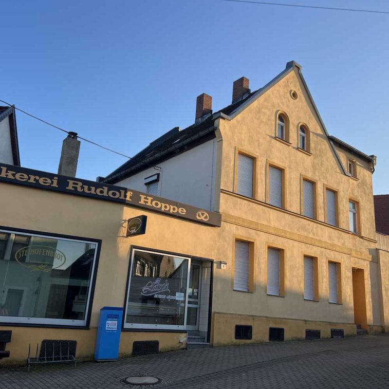Im Erdgeschoss war bis zur dessen Schließung ein Bächereifachgeschäft inklusive Backstube und weiterer Wirtschaftsräume untergebracht. In den beiden oberen Etagen befinden sich mind. 2 Wohneinheiten. Das Objekt steht leer und bedarf einer grundlegenden Sanierung und Modernisierung. Die Flächen im Erdgeschoss können jederzeit in ein normales Wohnkonzept umgenutzt werden.